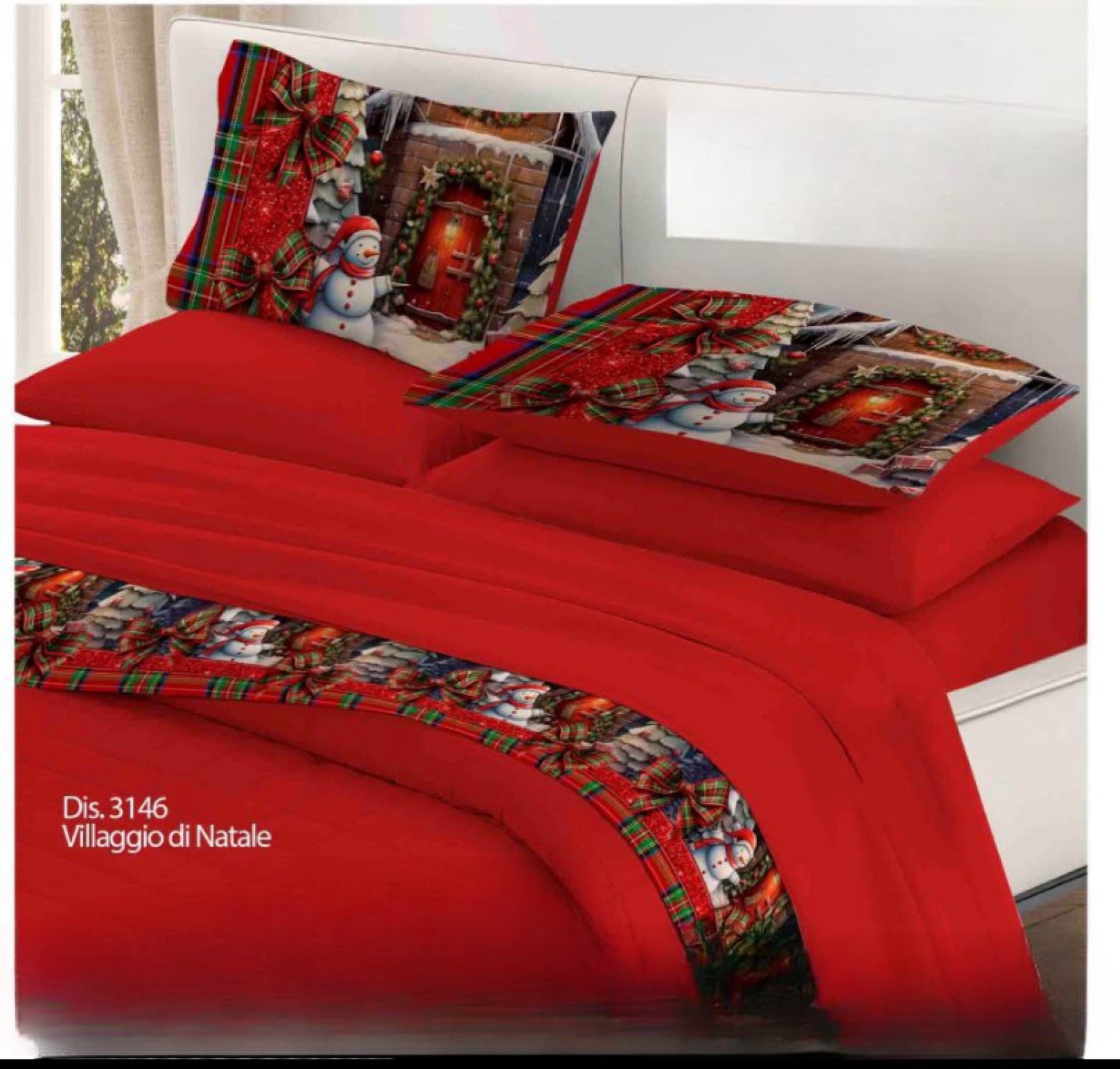 Tessuto impreziosito dalla Balza in stampa Digitale in coordinato con le Federe.