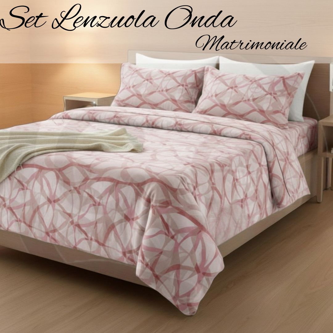 Set Lenzuola Matrimoniale. 2 Federe 52x82 cm Lenzuola Sopra: 245x285 cm. Lenzuola Sotto: 180x200 cm con Angoli da 25 cm. Tessuto: 100% Cotone