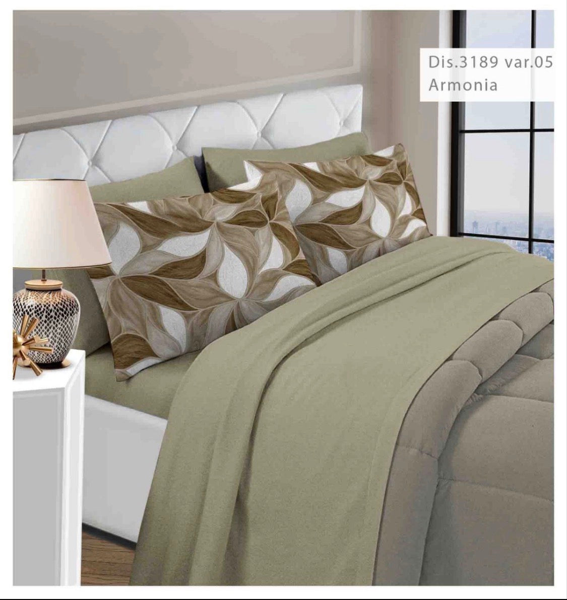 Lenzuola in 100% cotone, prodotta interamente in Italia. Il completo include 4 federe: 2 tinta unita 100% cotone e 2 in stampa digitale.