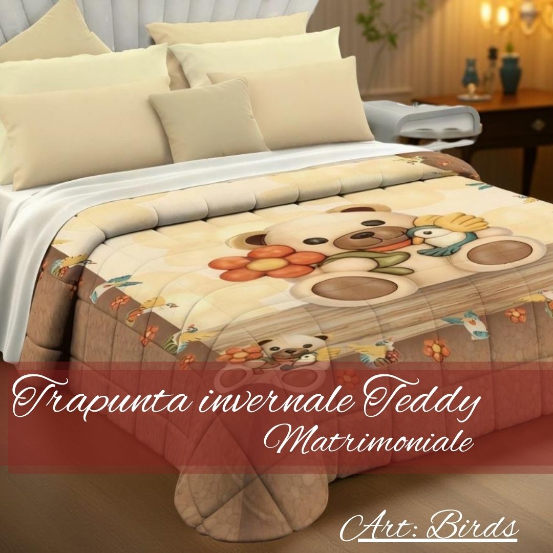 Lasciati avvolgere dalla dolcezza della Trapunta Teddy , un connubio perfetto tra tenerezza e stile. La sua stampa digitale ad alta definizione ritrae un adorabile orsetto circondato da eleganti dettagli ispirati allo stile Thun, caratterizzati da sfumature calde e armoniose che donano alla camera un’atmosfera accogliente e raffinata.