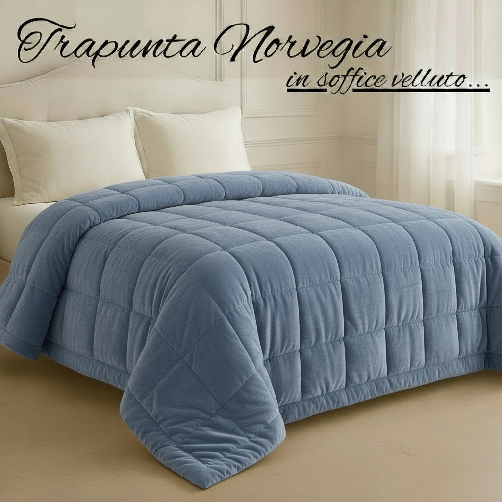 Avvolgiti nel calore della Trapunta Invernale Norvegia, realizzata con imbottitura da 320 gr/m² che assicura un comfort ideale durante le prime notti invernali.
